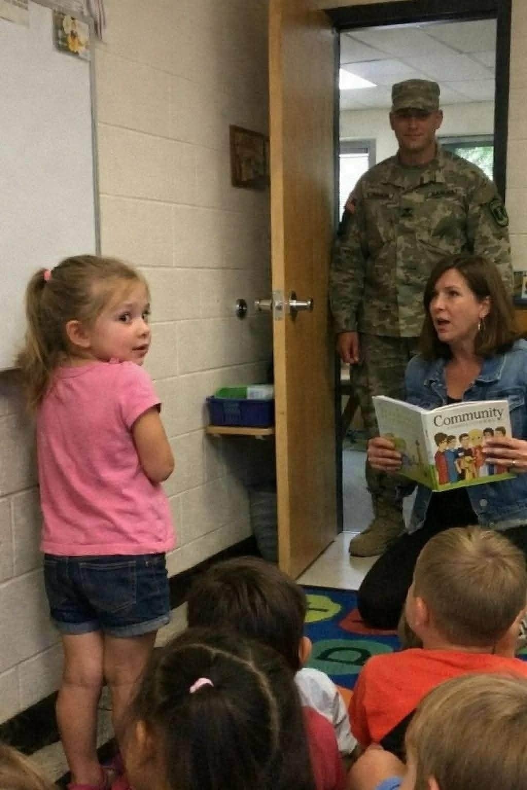 The first thing he smelled wasn’t freedom. It was jet fuel, sweat, and a year of sand that refused to let go. Eighteen hours from war to a beige American school, and he still wasn’t sure which world felt more dangerous. He came home early, unannounced, chasing one small face and a promise he was terrified he’d already br…